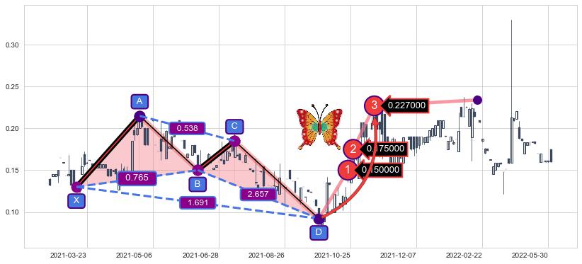 ➣ 已完成【蝴蝶】形态起点X: 2021-03-17, 终点D: 2021-09-27, 共93交易日