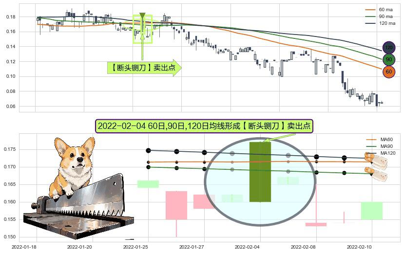 ⚀ 2022-02-04日显现 60日-90日-120日均线 【断头铡刀】卖出点 看空信号,后市看跌,卖出