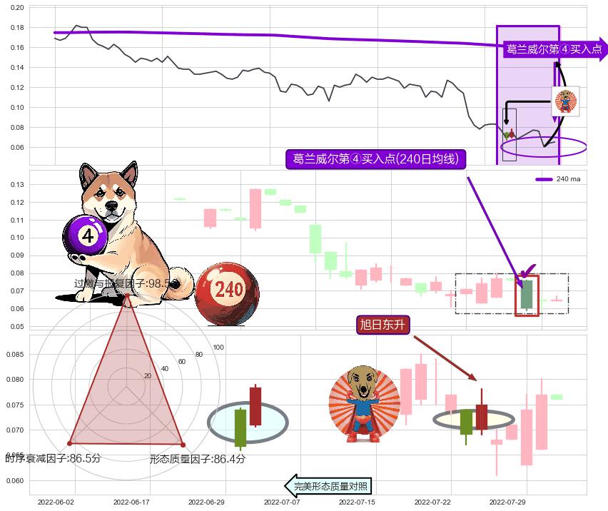 | 3 🅚:上涨螺旋桨形态 ➕ 🎢:葛兰威尔第④买入点买入点信号形成后,猜想后续走势持续反弹上升(均值回复) ☞ 看多信号 ⇥ 【均线】交织【🅚线】⇥ 综合量化分数: 56 | > |