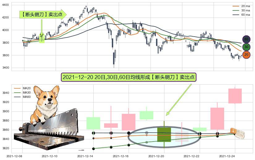 形态多维评估: ⚀ 2021-12-20日显现 20日-30日-60日均线 【断头铡刀】卖出点 看空信号,后市看跌,卖出