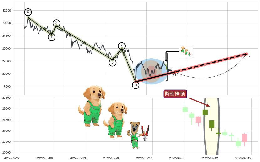 ♞ 延续前期下跌趋势提供的关键价格位有1个:21471.36,将对后续走势造成一定阻力
