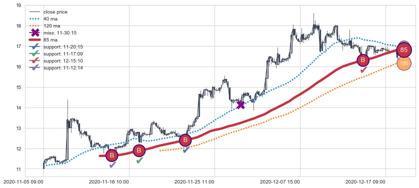 ➢ 最优均线组合共正确确认支撑阻力信号9处,正确确认率 52.94%