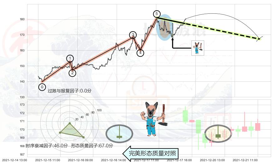 ➣ 顶部尽头线(下山虎) + 波浪理论上涨浪:浪5回调拐点信号叠加后【反向回撤率】偏高,【看空】信号叠加【存续影响降权】