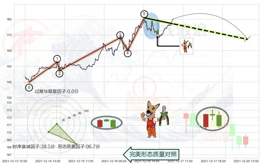 ➢ 顶部尽头线(下山虎) + 波浪理论上涨浪:浪5回调拐点信号叠加后【目标达成率】中等,【看空】信号叠加【存续影响中等】
