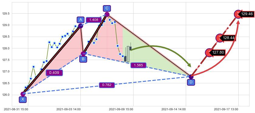 ➣ 未完成【赛福】形态起点X: 08-31:13, 已到达C点: 09-08:12, 预测最终D点: 09-15:09, 共62交易小时