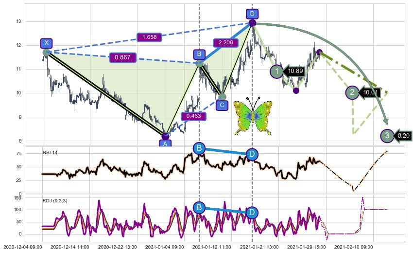 ➣ 已完成【蝴蝶】形态起点X: 12-04:13, 终点D: 01-15:09, 共219交易小时