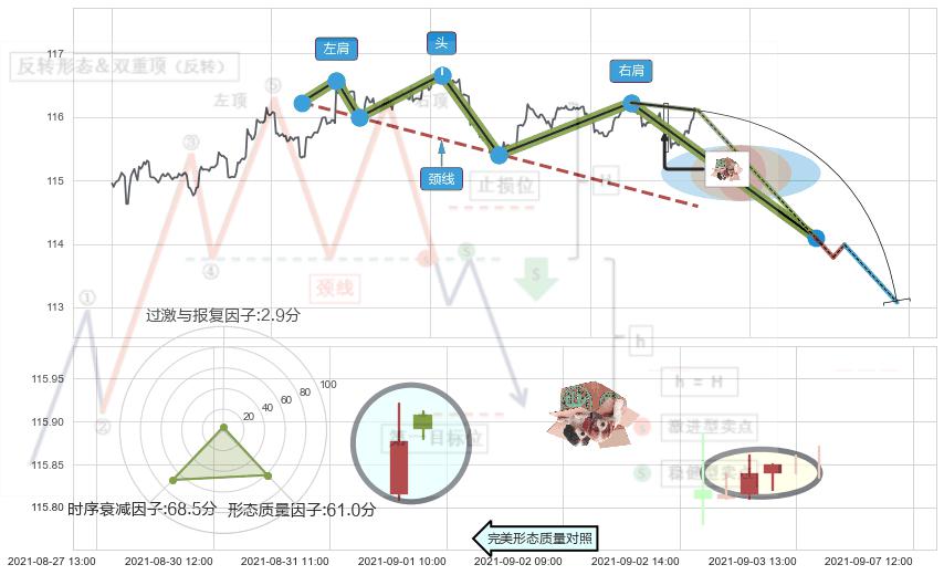 ➢ 🕰 价格走势在2021-09-03 11:00:00至2021-09-03 12:00:00期间形成顶部尽头线(下山虎),残存影响值:-2.68