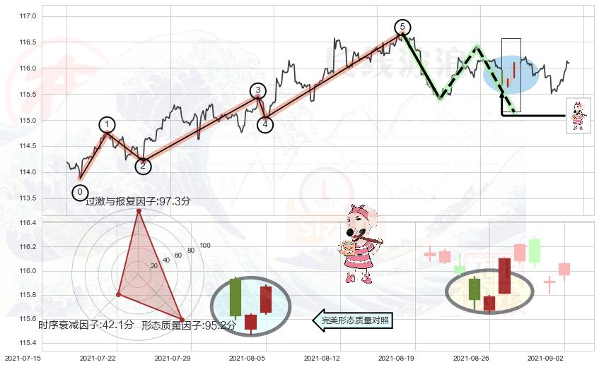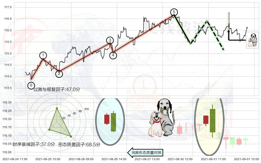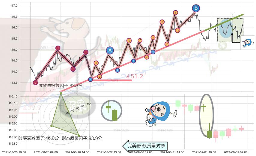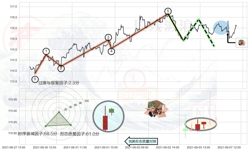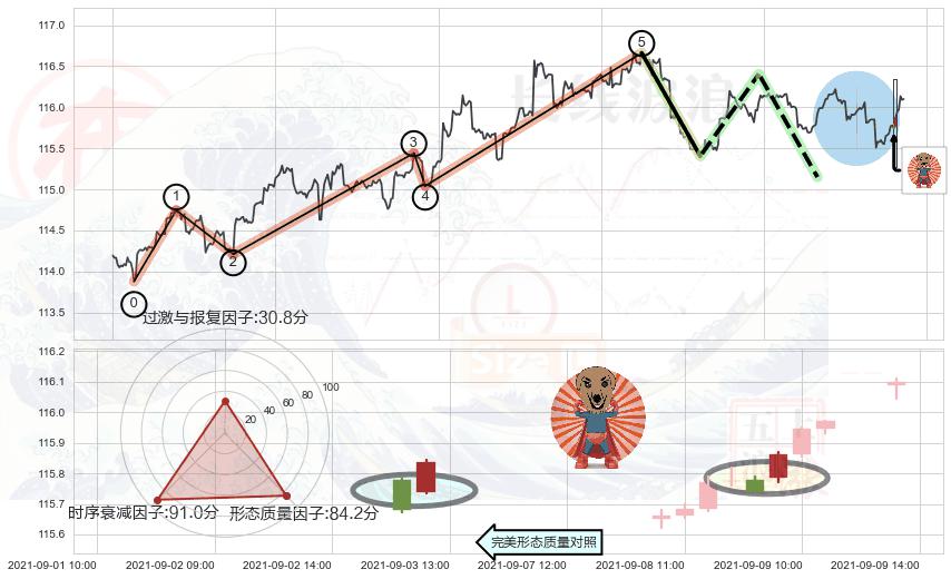 ➢ 🕰 价格走势在2021-09-07 12:00:00至2021-09-07 12:00:00期间形成单针探底(定海神针),残存影响值:3.35