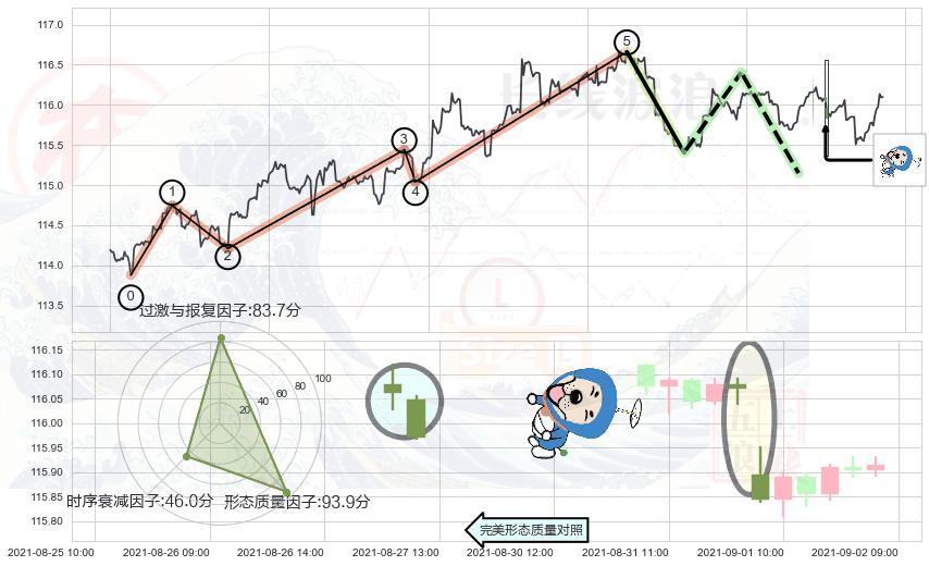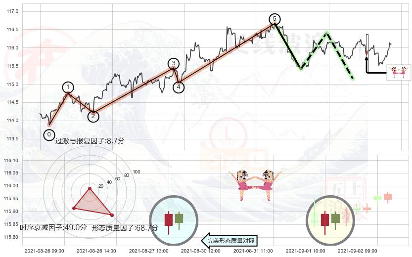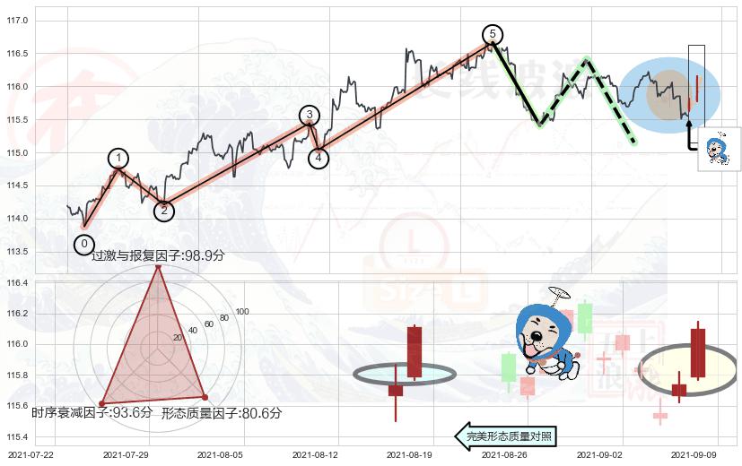 ➢ 【仅预测突破】最后价格:116.10与预测突破价格:114.09→【空间中等】后续最小【反转】第一目标价格→(10-08:13: 113.08 )