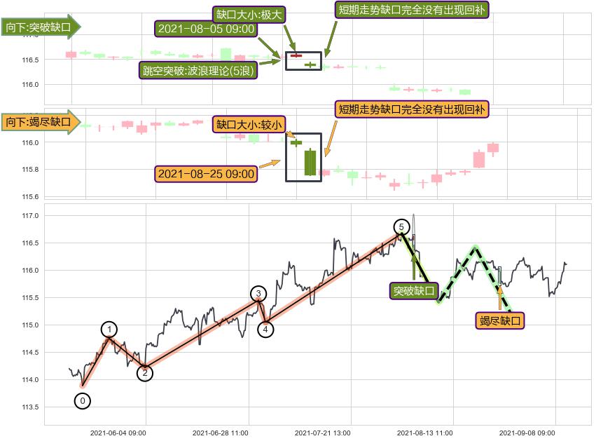 ➢ 2021-08-05 09:00形成:向下跳空【突破】缺口