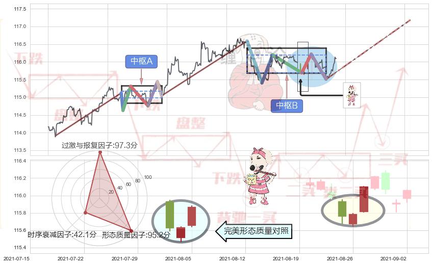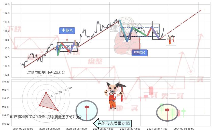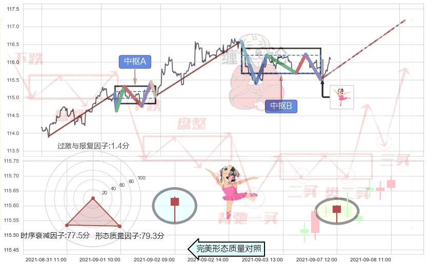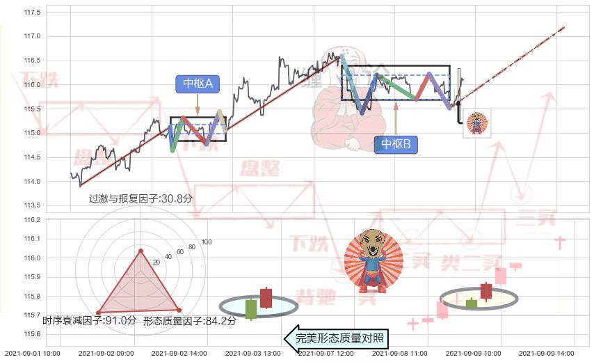 ➣ 【中枢B】:08-04:14-09-07:09,中枢由6笔构成,共134交易小时, ZG=116.20, ZD=115.69