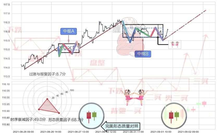 ➣ 上涨螺旋桨形态 + 缠论中枢点突破中枢B阻力拉升信号叠加后【信号初始稳固度】极低,【看多】信号叠加【可信度影响极小】