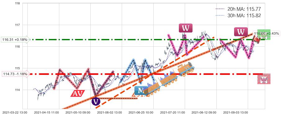 ♘ 阻力价格位116.31,可信任强度74.93%,距离最后交易2021-09-09 14:00形成的收盘价格116.10相差 +0.18%
