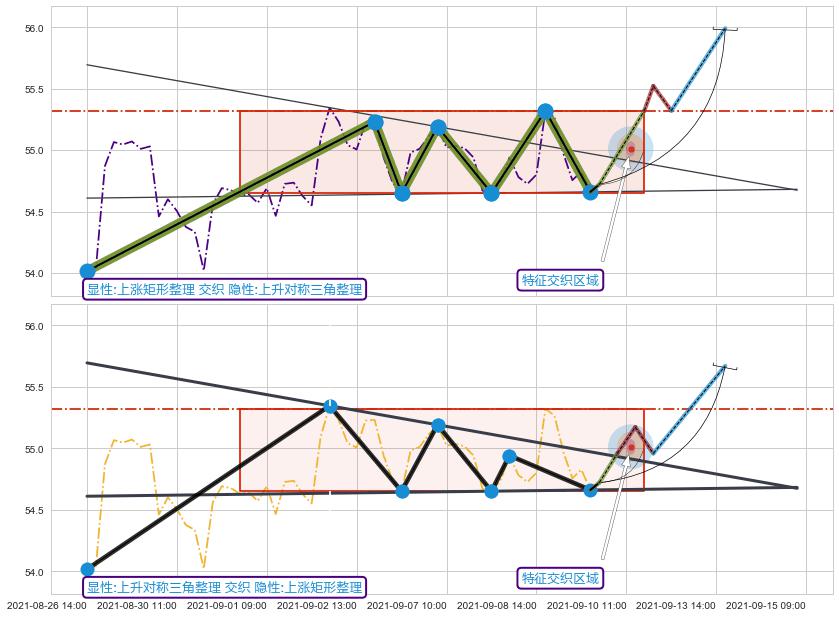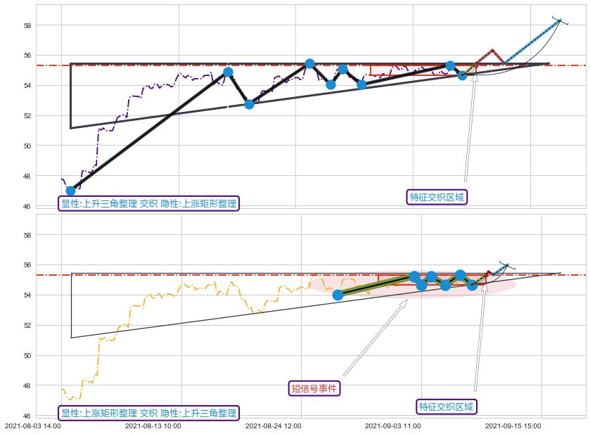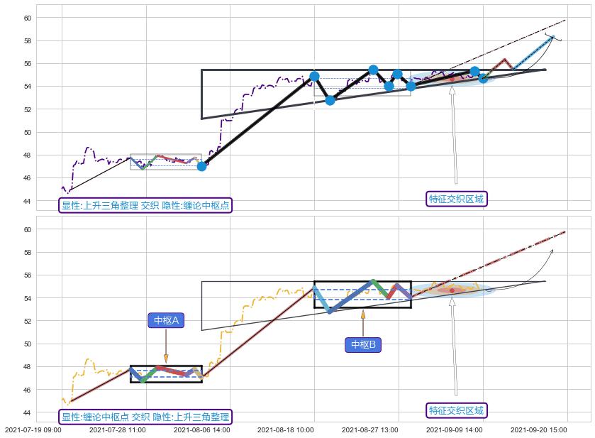 ➢ 上升三角整理与缠论中枢点信号事件周期长度级别相同,同周期信号事件