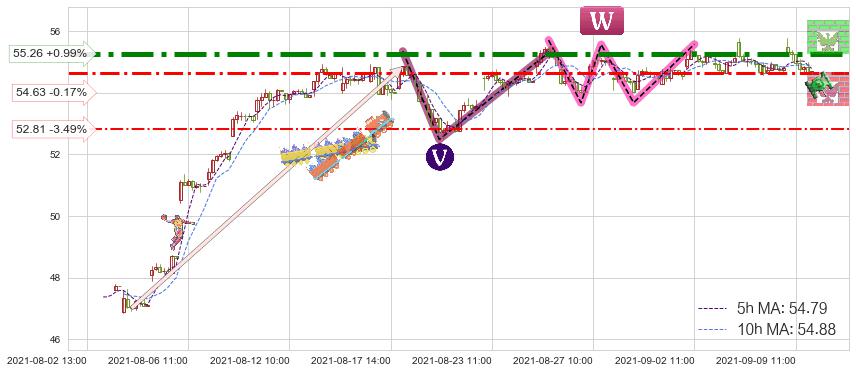♞ 5小时均线:54.79,10小时均线:54.88→ 快线<慢线