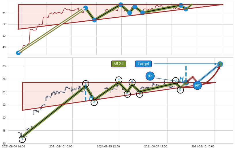 ➣ 最小中继整理涨幅→𝐇: 0.6700 (上平行阻力线与下平行支撑线的垂直距离)