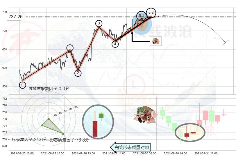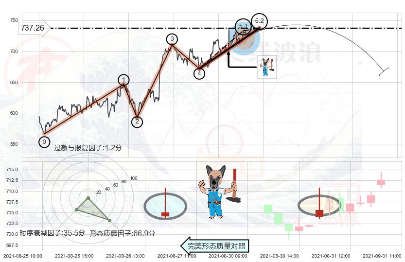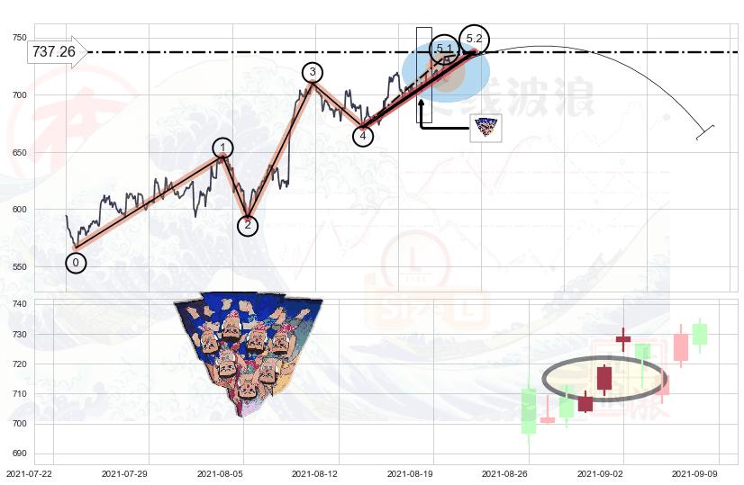 ➢ 5.1: 预测当前第5浪位置(09-08:11, 733.12),仍然有上升空间