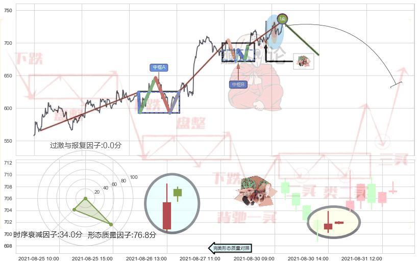 ➣ 顶部尽头线(下山虎) + 缠论买卖点上升缠:1卖回调拐点信号叠加后【信号初始稳固度】极低,【看空】信号叠加【可信度影响极小】