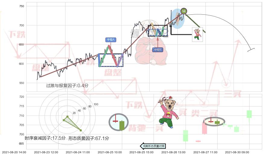 ➢ 🕰 价格走势在2021-08-27 10:00:00至2021-08-27 11:00:00期间形成射击之星形态,残存影响值:-1.35