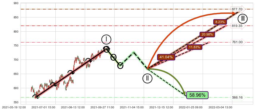➢ 循环浪继续向上【最高】位置(03-18:13, 877.70),匹配聚类样本比例20.06%, 可能性概率8.23%