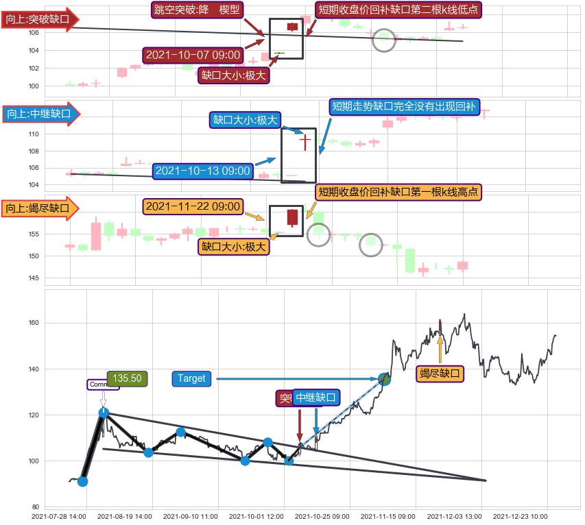 ➢ 2021-11-22 09:00形成:向上跳空【竭尽】缺口