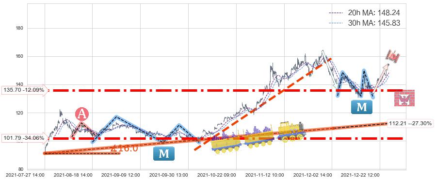 ♞ 20小时均线:148.24,30小时均线:145.83→ 快线>慢线