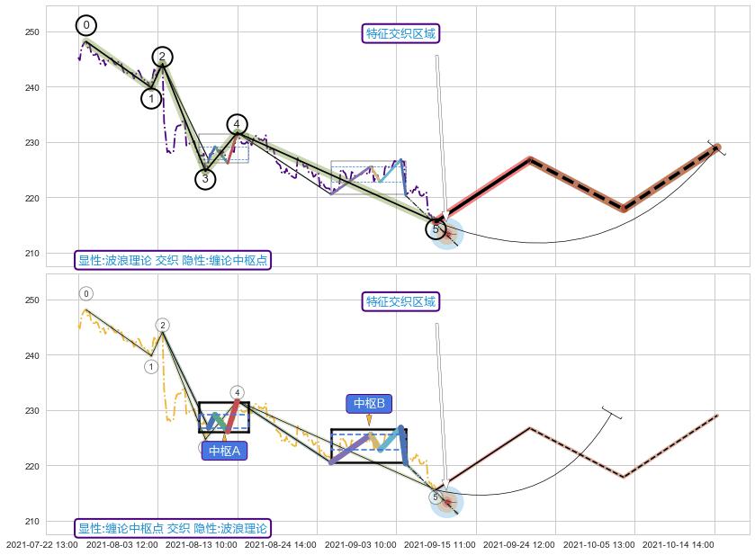 ➢ 波浪理论与缠论中枢点信号事件周期长度级别相同,同周期信号事件