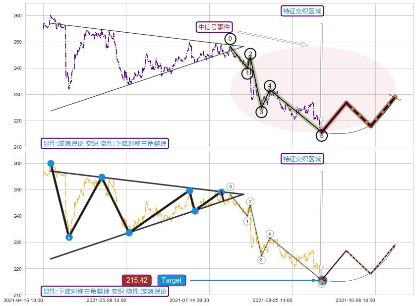 ➢ 波浪理论属【中级别信号事件】下降对称三角整理属【长级别信号事件】中长周期组合信号事件,中长事件长度比52.87%