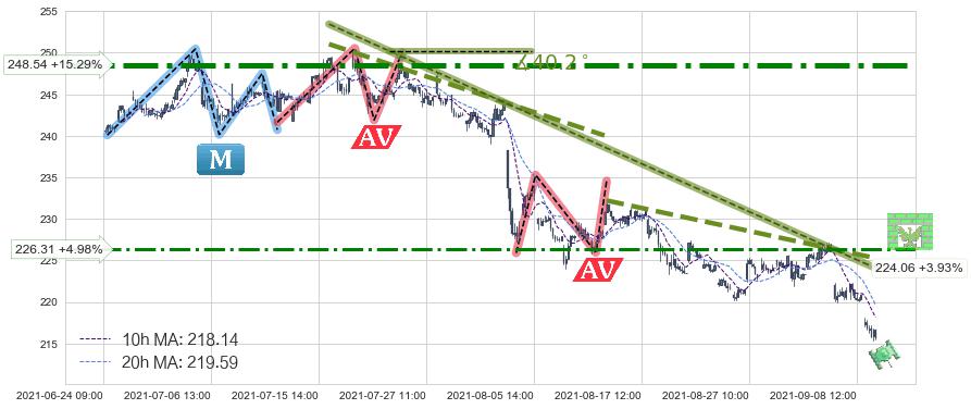 ♘ 阻力价格位226.31,可信任强度64.98%,距离最后交易2021-09-09 14:00形成的收盘价格215.58相差 +4.98%