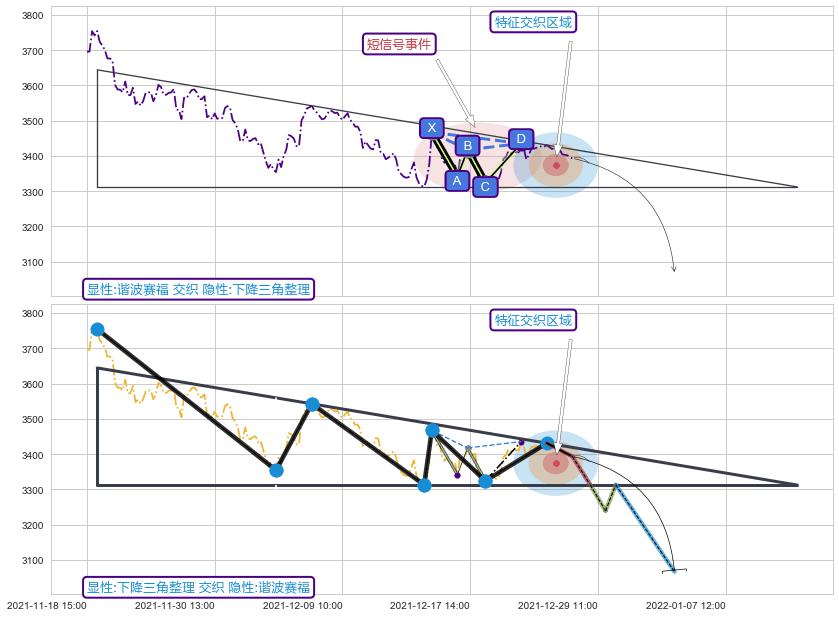 ➢ 谐波赛福属【短级别信号事件】下降三角整理属【长级别信号事件】长短周期组合信号事件, 短长事件长度比19.25%