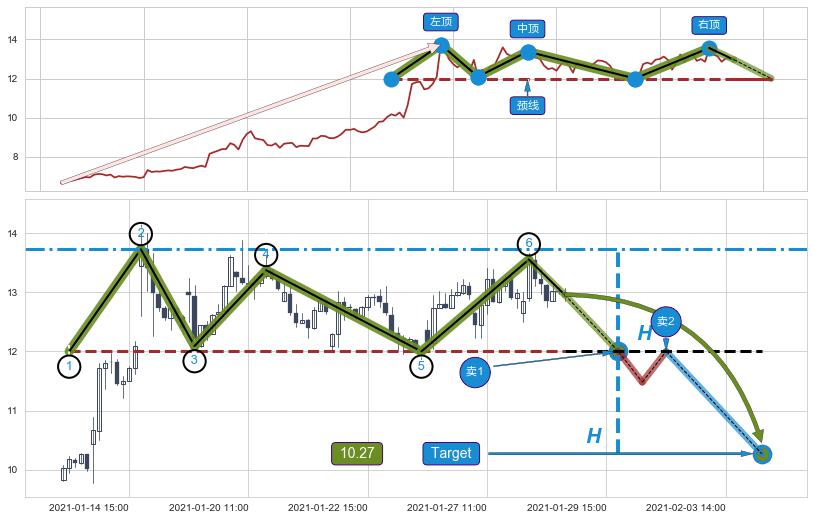 ➣ AI预测: 假定反转继续,第❷价格目标位置(01-29:11, 12.59)