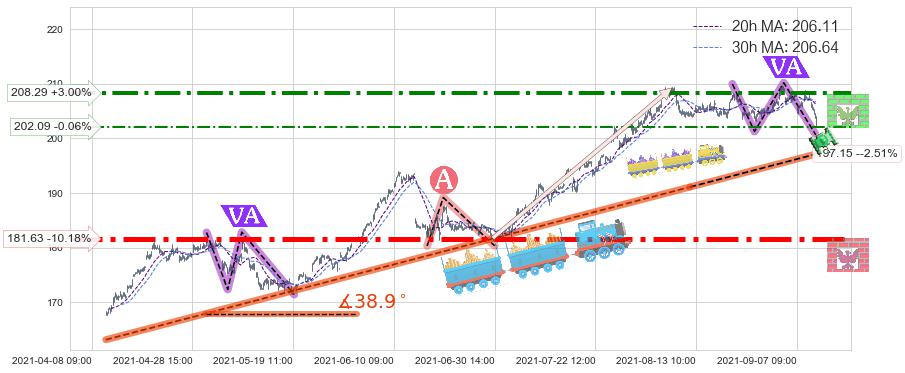 ♘ 阻力价格位202.09,可信任强度49.66%,距离最后交易2021-09-09 14:00形成的收盘价格202.22相差 -0.06%