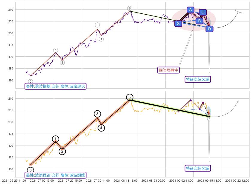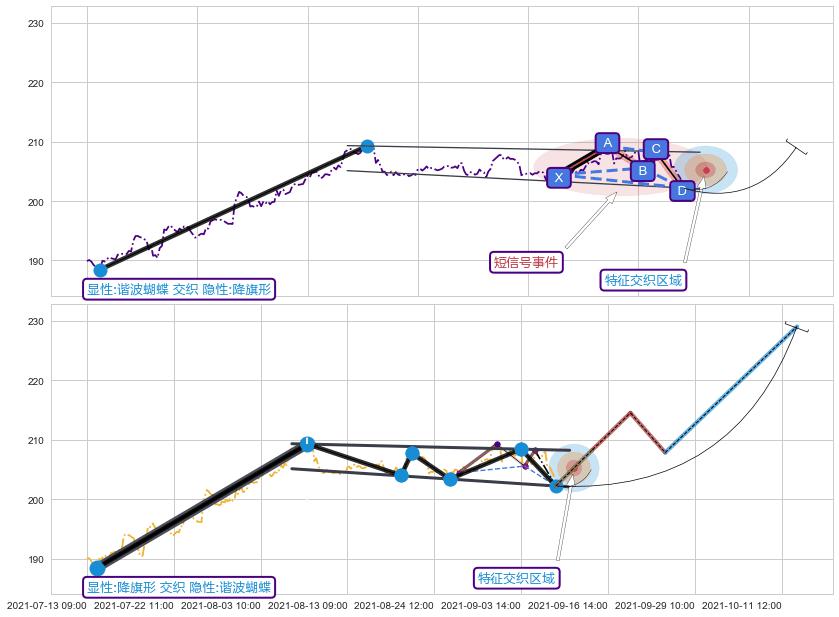 ➢ 谐波蝴蝶属【短级别信号事件】降旗形属【长级别信号事件】长短周期组合信号事件, 短长事件长度比21.51%