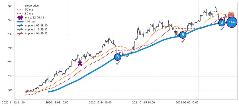 ➢ 最优均线组合共正确确认支撑阻力信号9处,正确确认率 75.00%