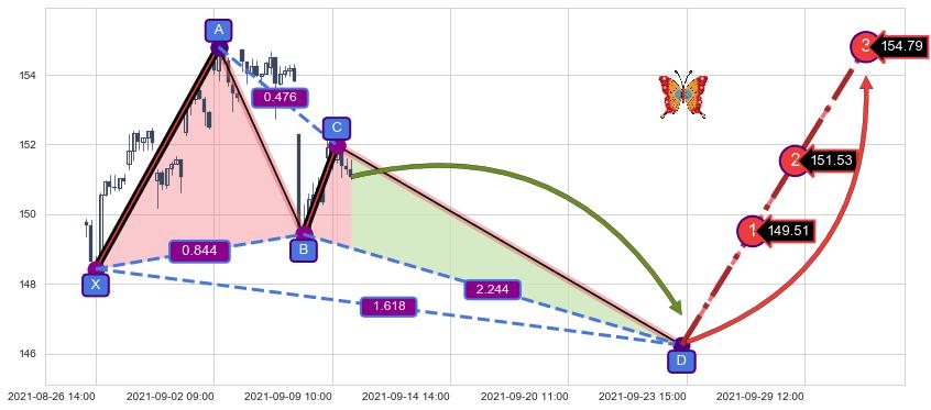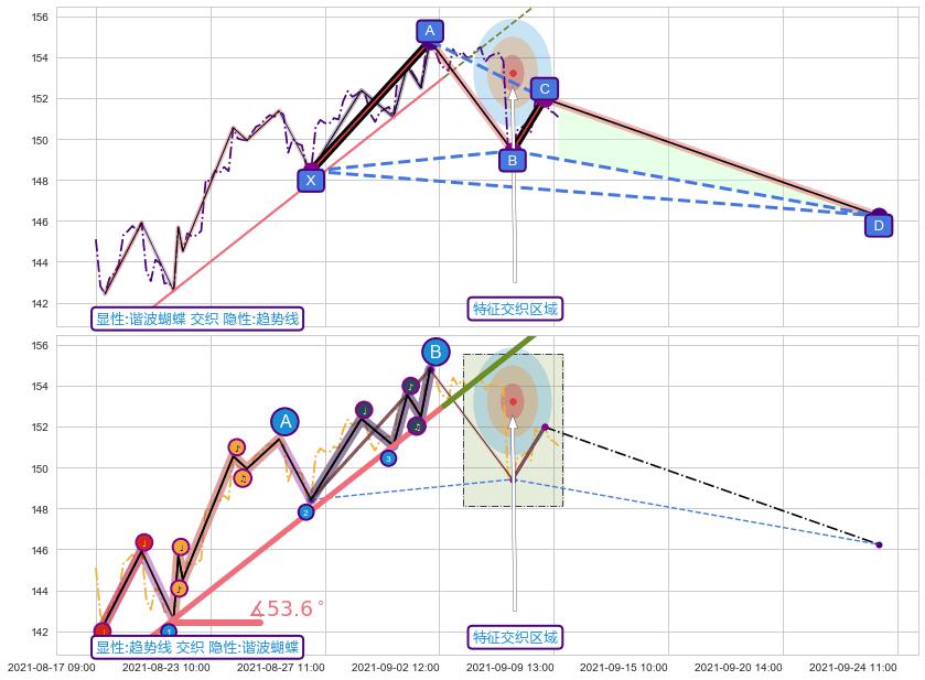 ➣ 未完成【蝴蝶】形态起点X: 08-26:14, 已到达C点: 09-09:11, 预测最终D点: 09-23:14, 共125交易小时