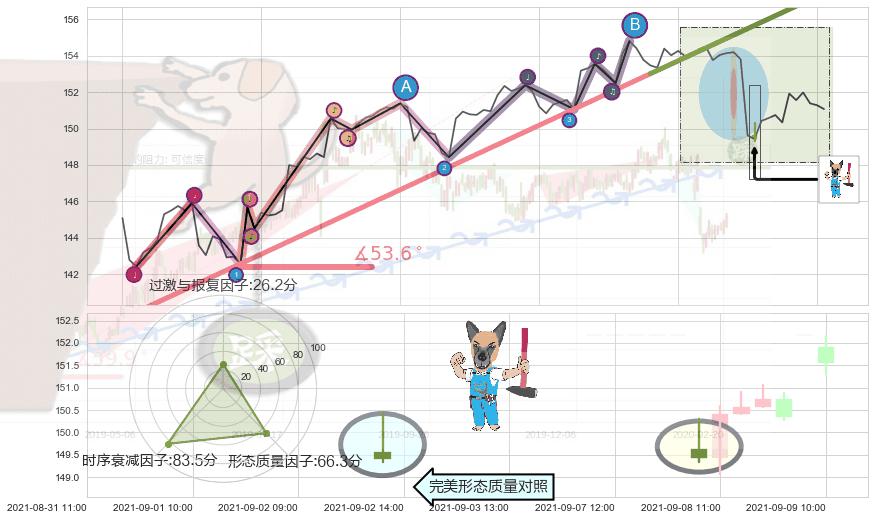 ♘ 阻力价格位151.13,可信任强度57.95%,距离最后交易2021-09-09 14:00形成的收盘价格151.07相差 +0.04%