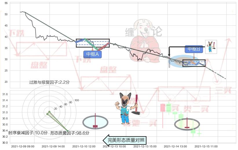 ➢ 下跌身怀六甲 🔜 缠论中枢点破位中枢B支撑下拉 综合量化分数:44.59 【偏空】