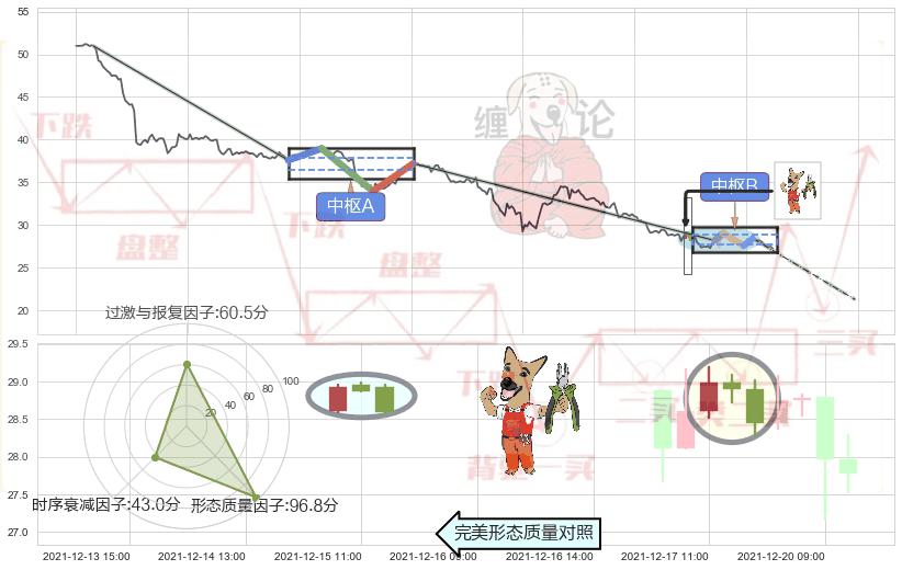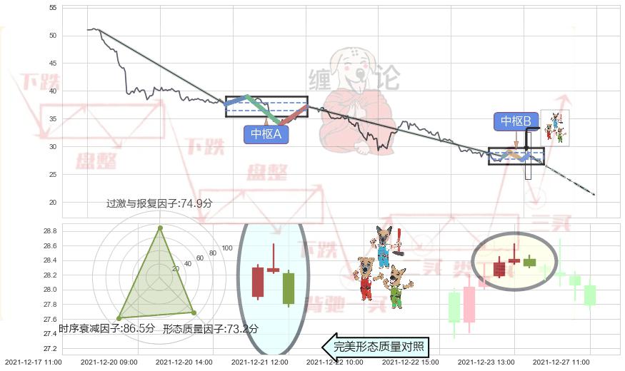➣ 下跌身怀六甲 + 缠论中枢点破位中枢B支撑下拉信号叠加后【信号初始稳固度】极高,【看空】信号叠加【可信度影响极大】