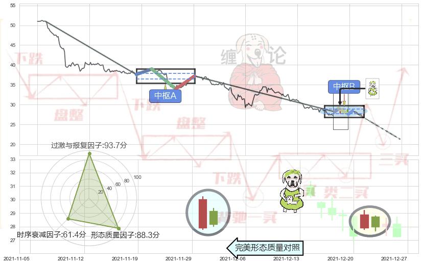 从2021-12-03 09:00至2021-12-27 15:00,共包含113个小时,阶段股价下跌-6.16%,阶段股价变动位移路程比: 1 : 17