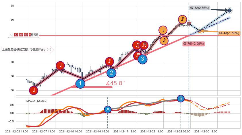 ➢ 预测:2021-12-28 16:00,【小幅回撤】稳定目前上涨趋势的前提下,预测价格:64.43
