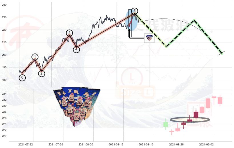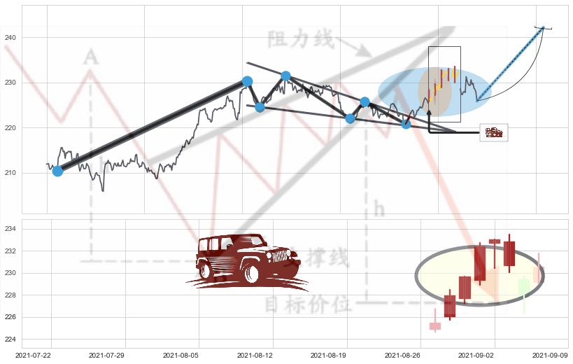 ➣ D点拟合预测价格214.02,距离最后交易收盘价格225.88相差 -5.25%