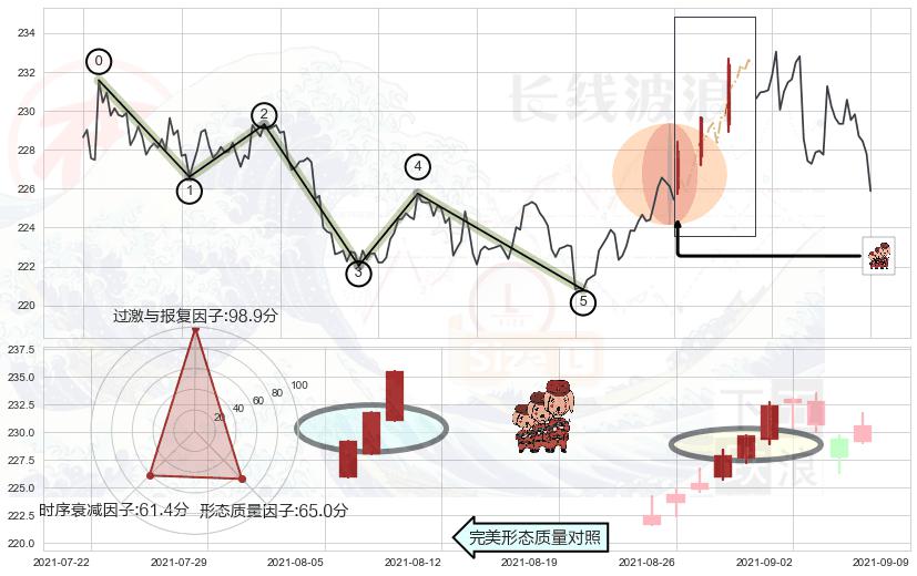 从2021-07-21 09:00至2021-08-06 13:00,共包含85个小时,阶段股价下跌-0.37%,阶段股价变动位移路程比: 1 : 59
