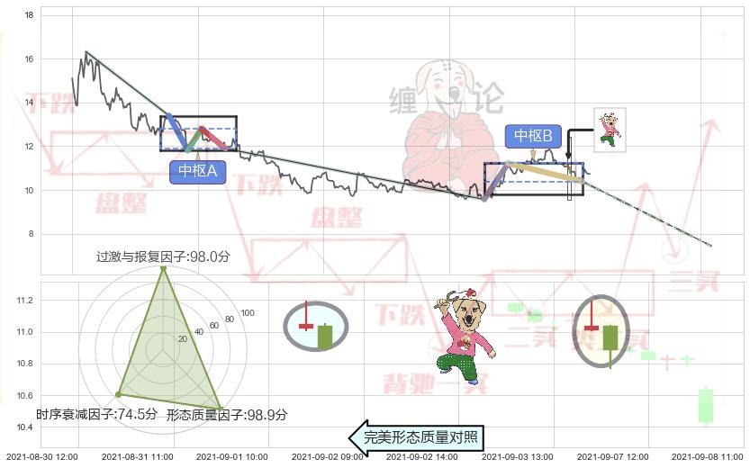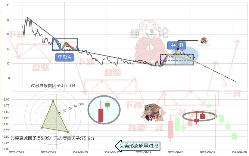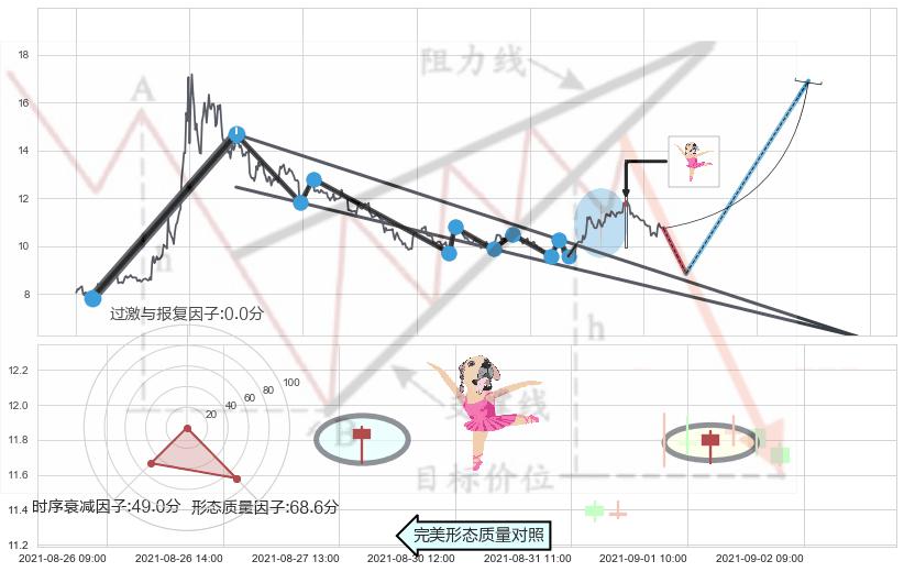 从2021-06-22 14:00至2021-08-30 09:00,共包含289个小时,阶段股价下跌-15.04%,阶段股价变动位移路程比: 1 : 16,下跌趋势角度: 47.6