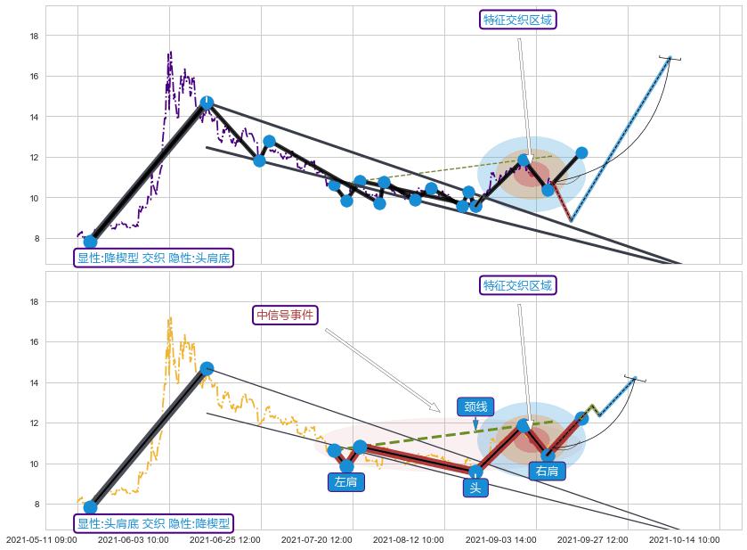 ➢ 头肩底属【中级别信号事件】降楔型属【长级别信号事件】中长周期组合信号事件,中长事件长度比60.98%