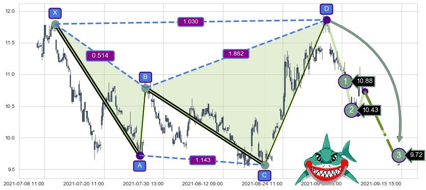 ➣ 已完成【鲨鱼】形态起点X: 07-09:14, 终点D: 09-01:12, 共229交易小时