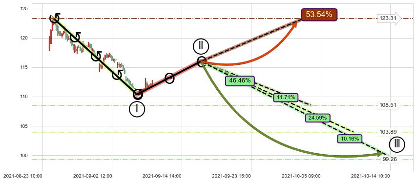 ➣ 循环浪继续向下【平均值】位置(10-08:12, 103.89),匹配聚类样本比例52.93%, 可能性概率24.59%