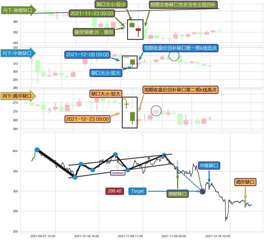 ➢ 2021-12-23 09:00形成:向下跳空【竭尽】缺口