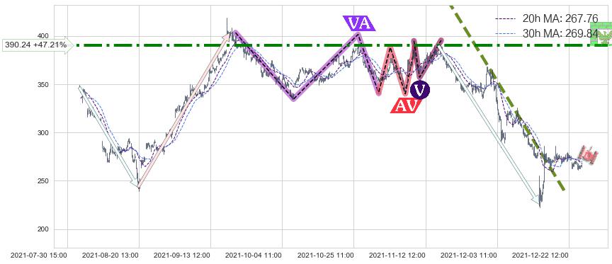 ♘ 阻力价格位390.24,可信任强度81.27%,距离最后交易2021-12-27 16:00形成的收盘价格265.09相差 +47.21%
