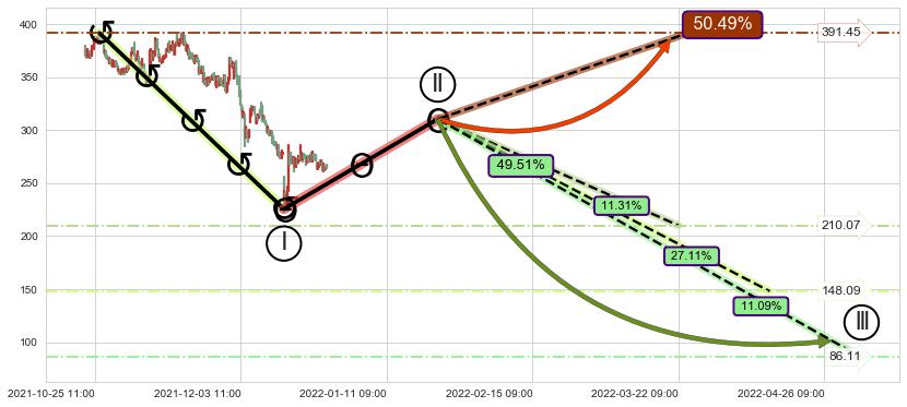 ➢ 高概率大级别循环下跌浪被破坏,反转向上(突破5浪起点)概率50.49%
