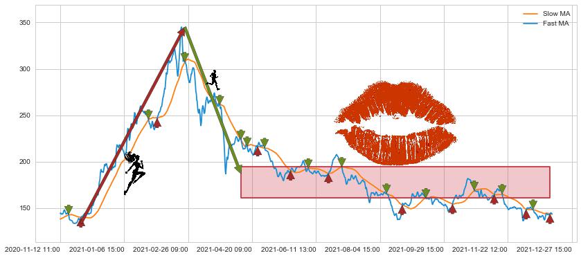 04-09 11:00至12-23 14:00 慢线与快线多次接触,存在上下穿越,有缠绕